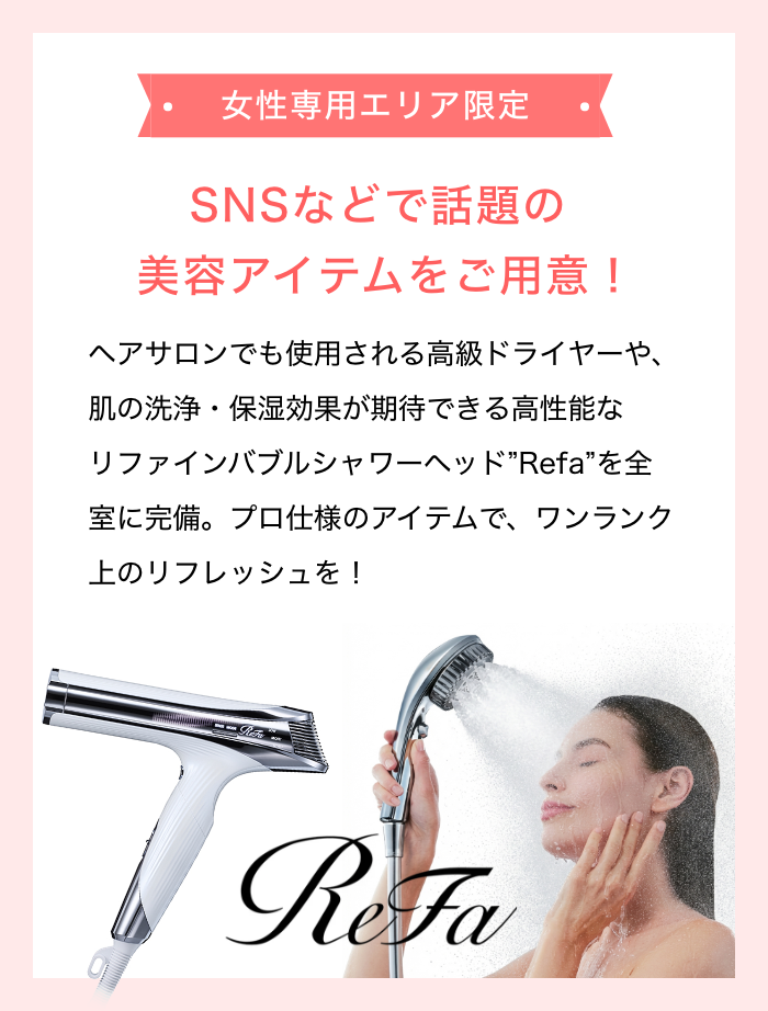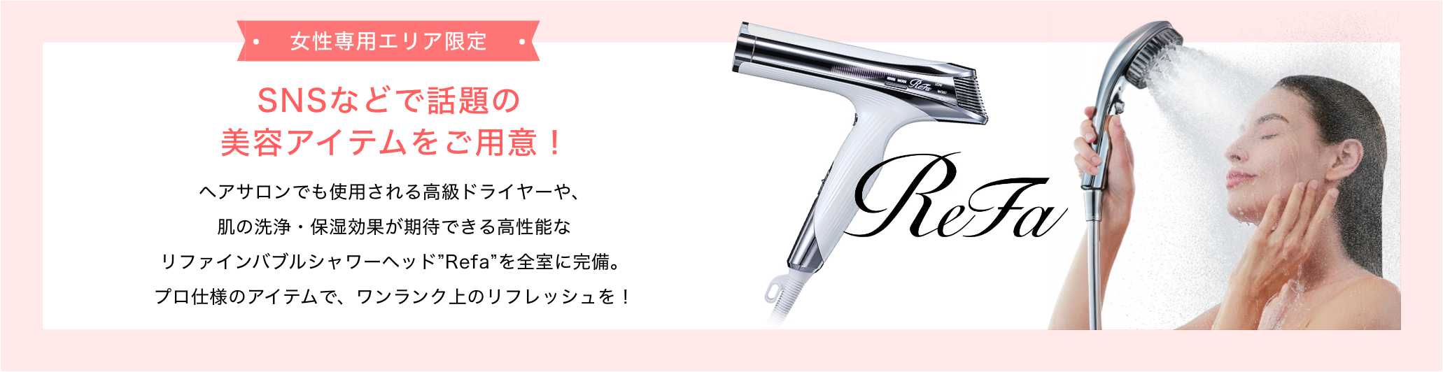 - 美容・健康サポートとして、コラーゲンルーム、フェムケアマシン、マッサージチェアの導入