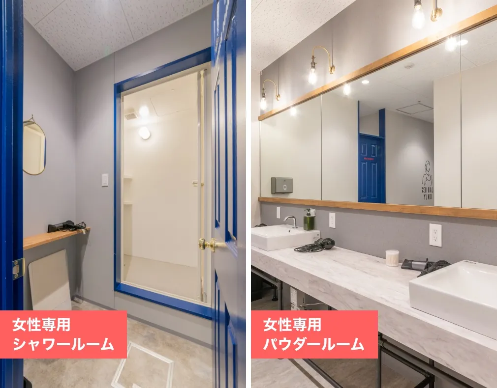 運動後には、広々としたパウダールームでゆっくりと身支度を整えることができますので、そのまま外出の準備も整います。また、女性専用更衣室には個室シャワーブースをご用意しておりますので、プライバシーに配慮した快適な空間で、安心してご利用いただけます。
