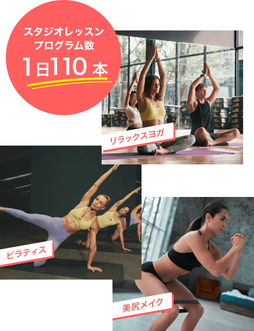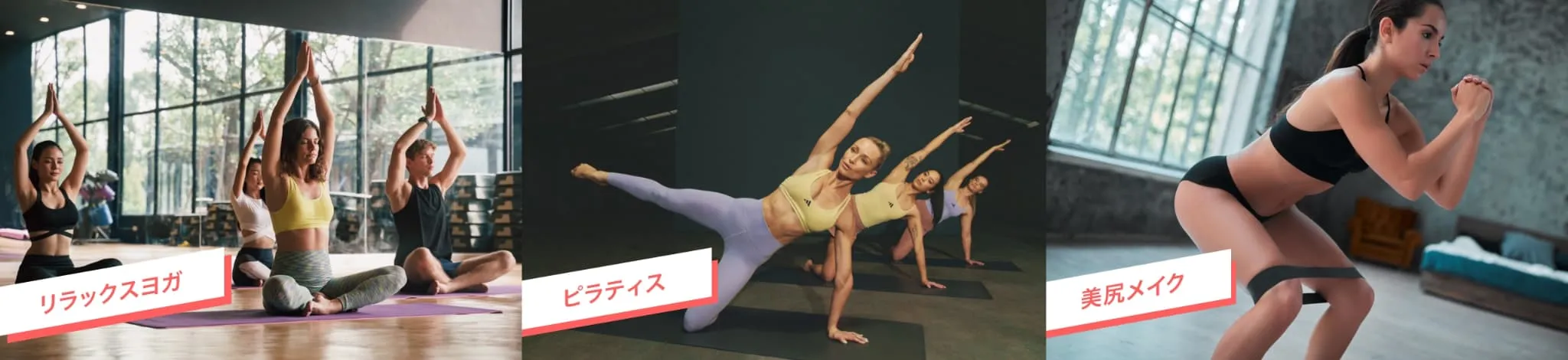 ヨガ・ピラティス・ダンス・格闘技系などの「動いて引き締める」レッスンまで、