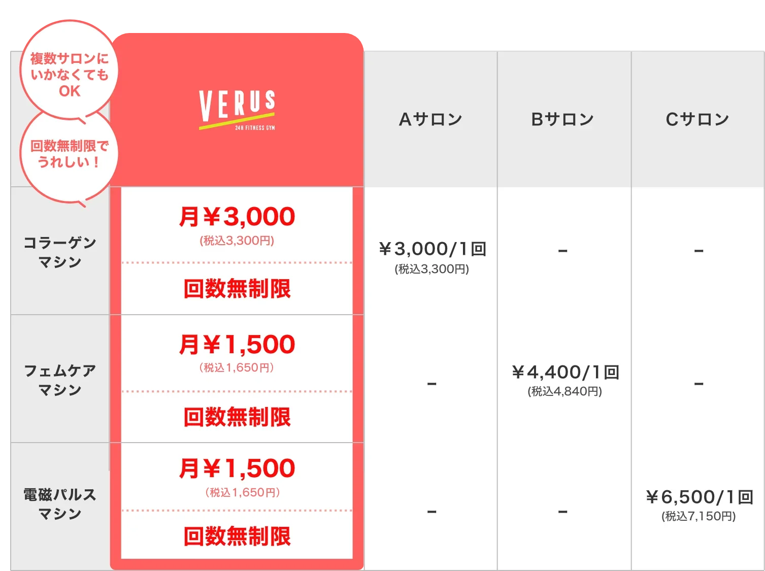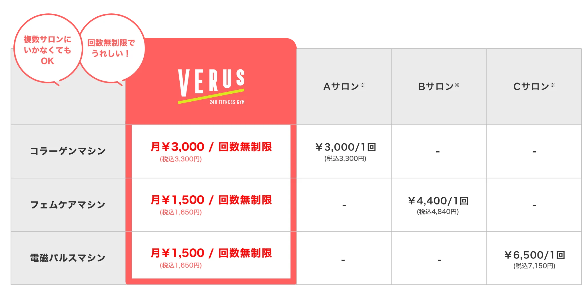 最新マシンで、気になる部分を徹底リフトアップ!栃木県ではVERUSにしかないマシンも!
