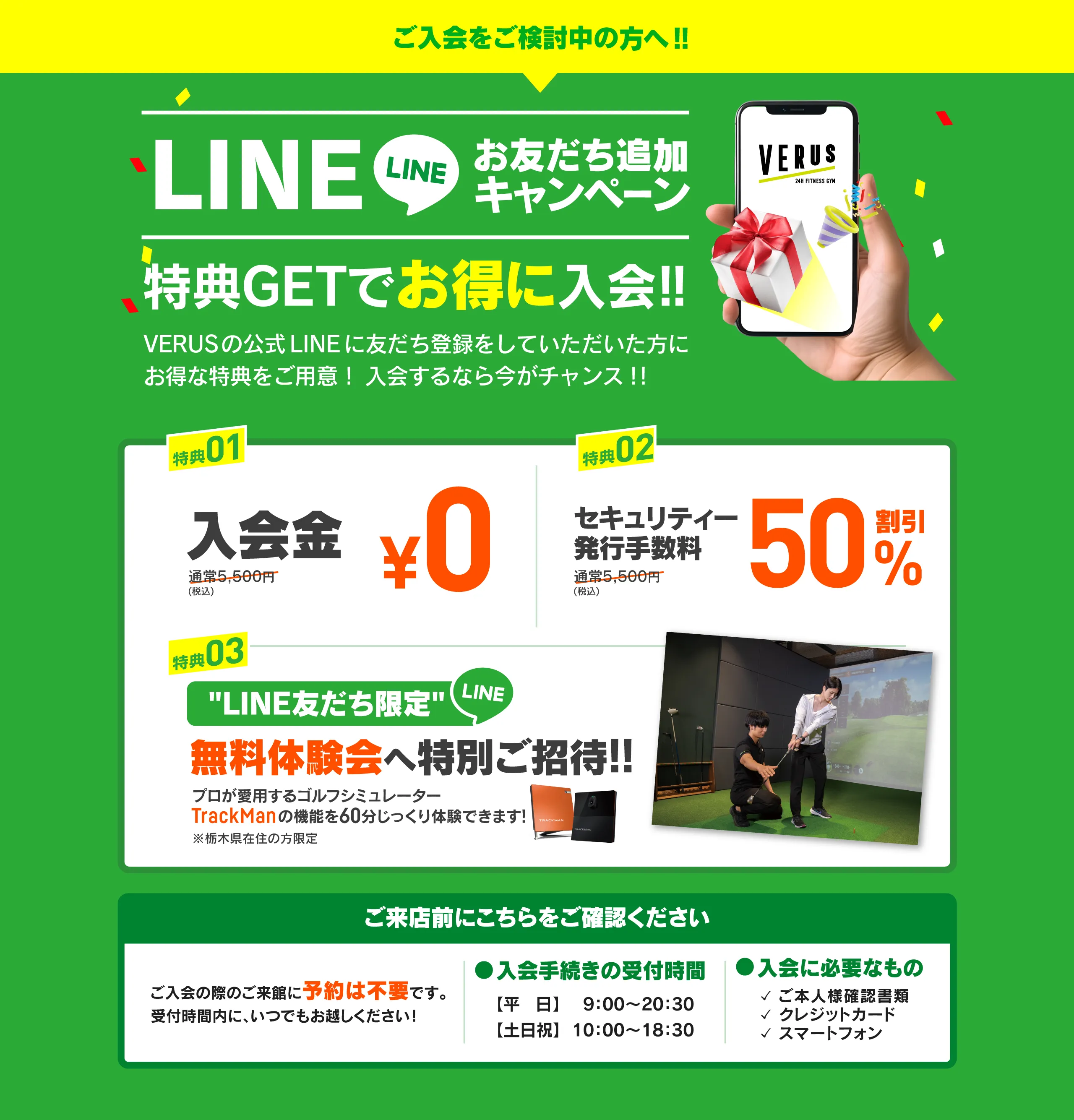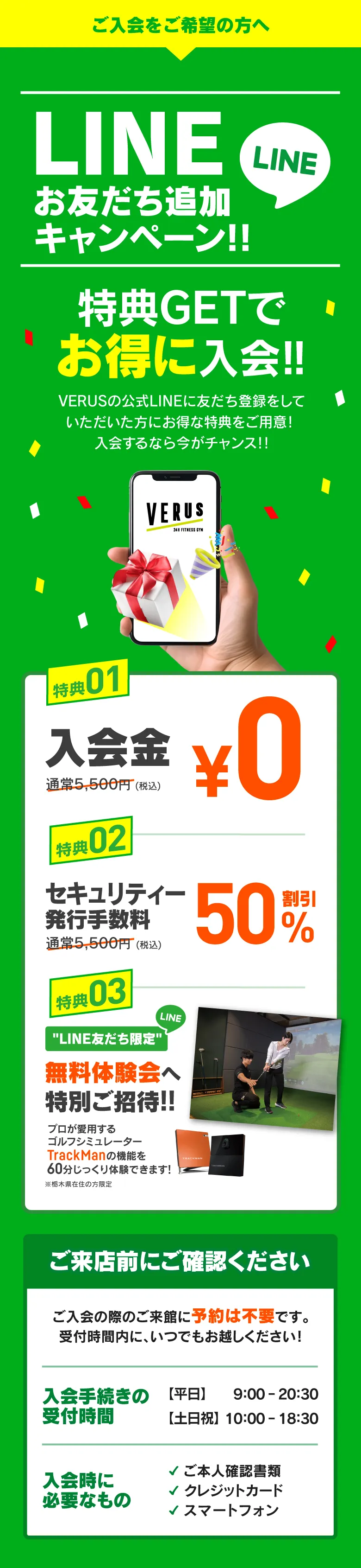VERUSは、同じ施設内に本格的なトレーニングジムを備えたハイブリッド空間。 ゴルフの上達に必要な「柔軟性」や「筋力」を無理なく補えるから、飛距離アップ、スイングの安定、フォーム改善が効率よく実現できます。
